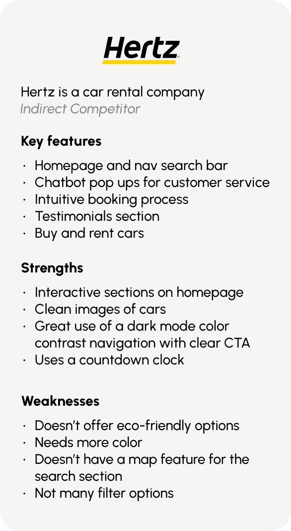 Researched and compared three competitors within the online car rental industry. How can we design an intuitive dashboard system so that people without marketing and tech backgrounds can easily use the app?