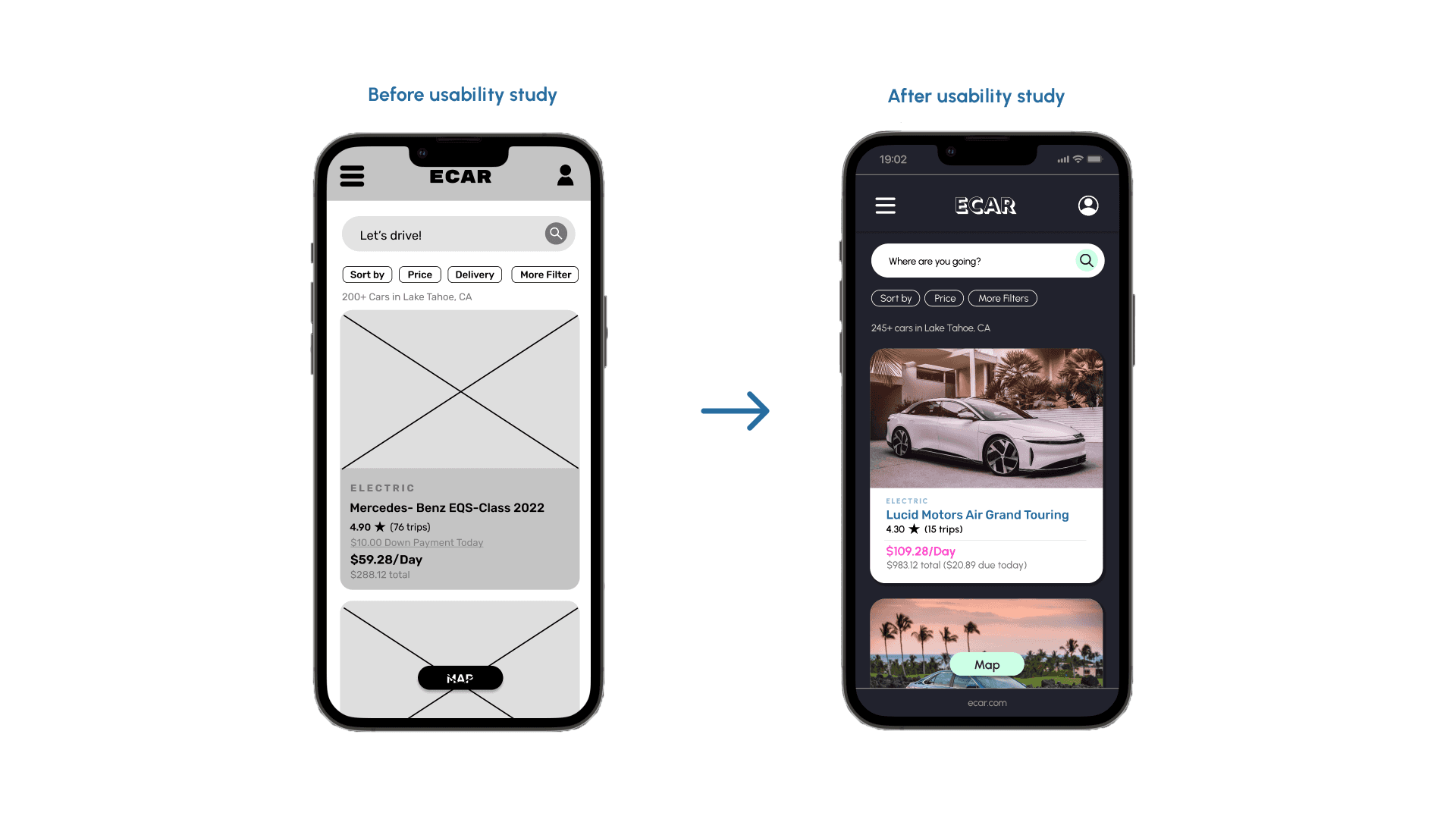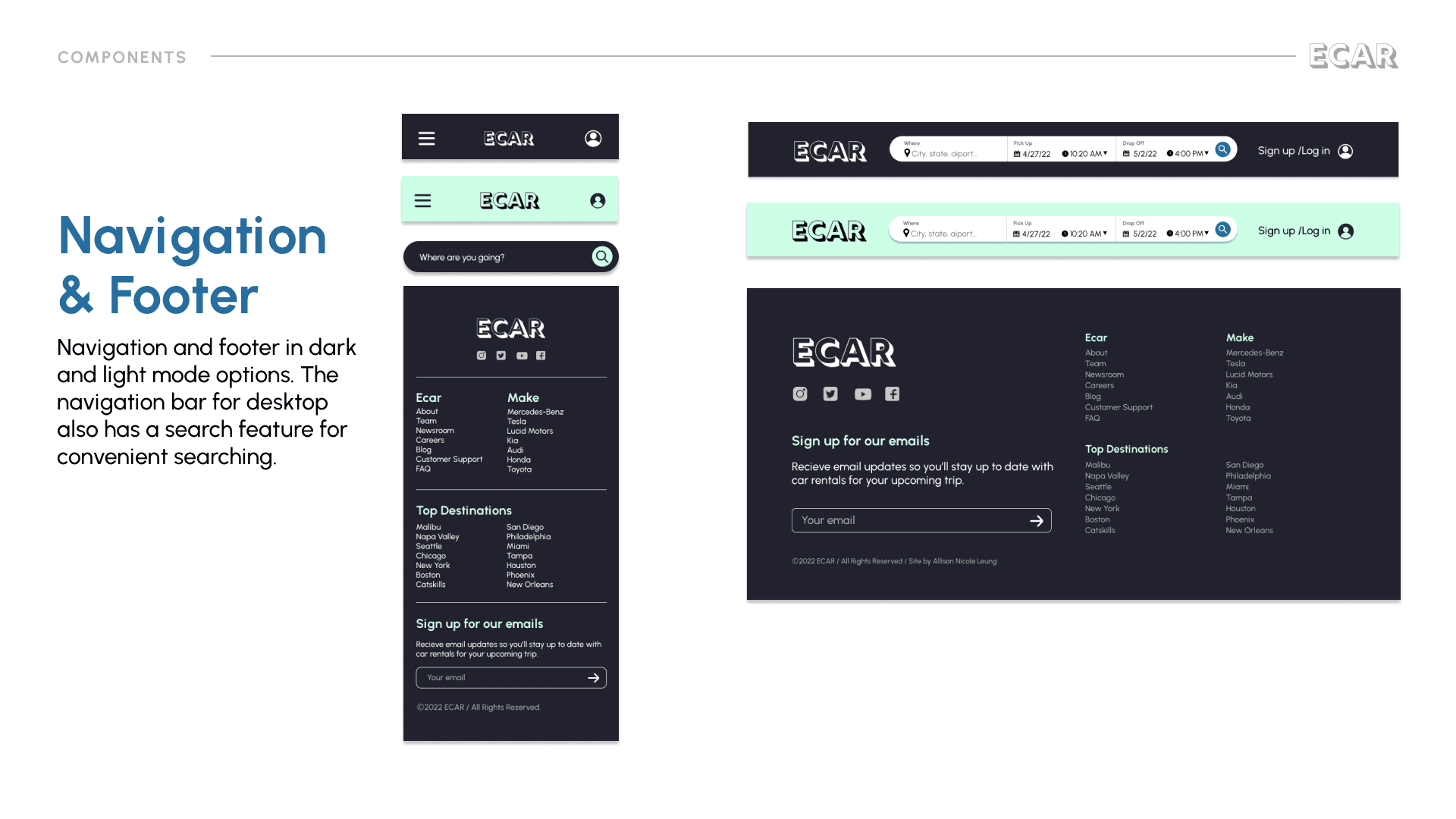 ECAR is an online marketplace for eco-friendly car rentals. The website is designed for desktop and mobile. It’s a P2P (peer-to-peer) service that connects people who want to rent out their car (host) with people who are looking for short-term and long-term rentals when they travel. ECAR also educates people on the best types of cars for the weather conditions and environmental settings their users are in.