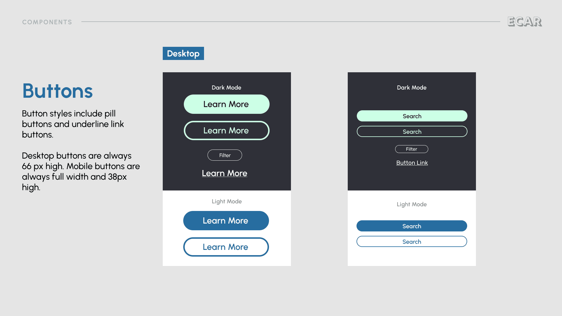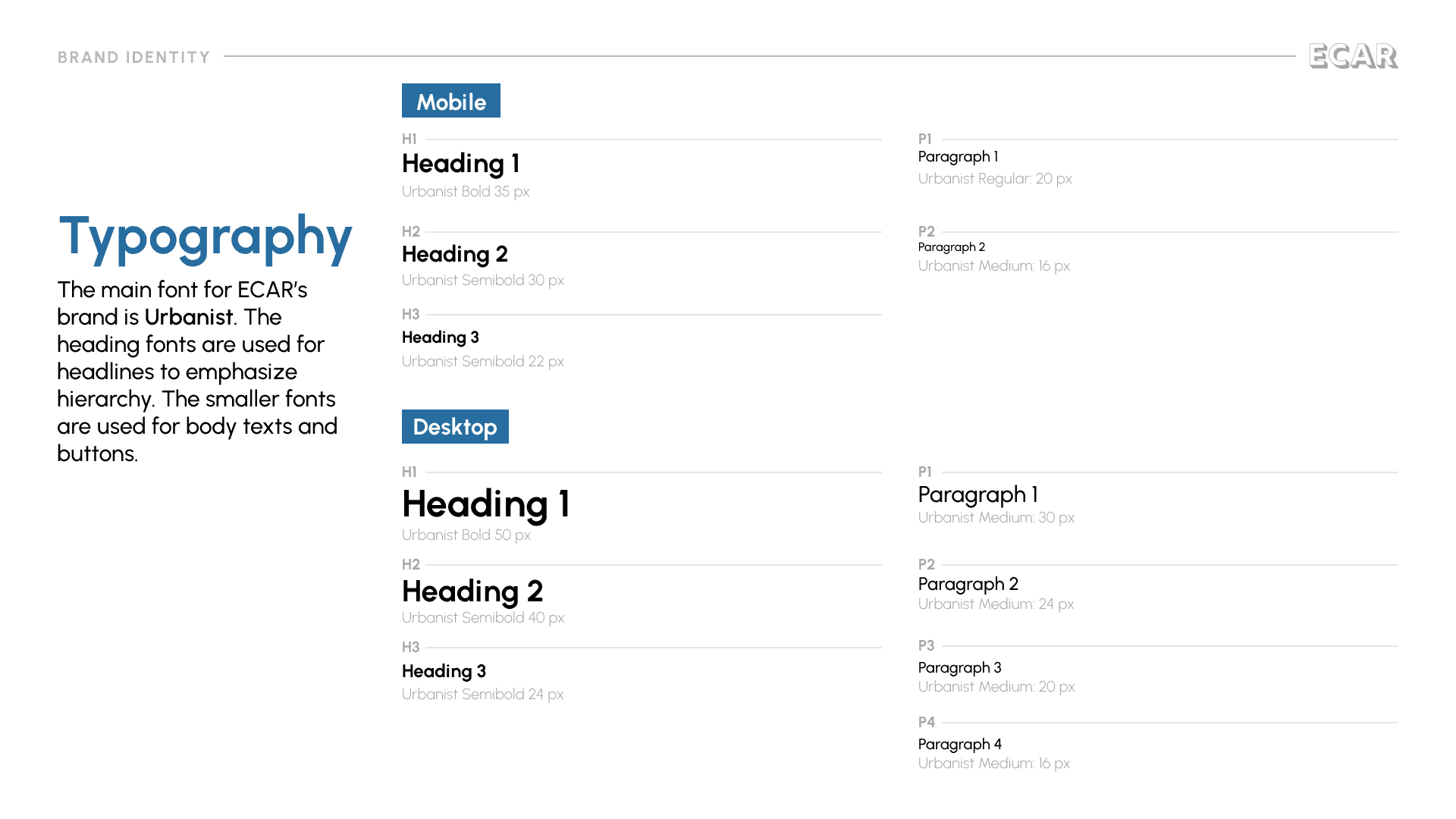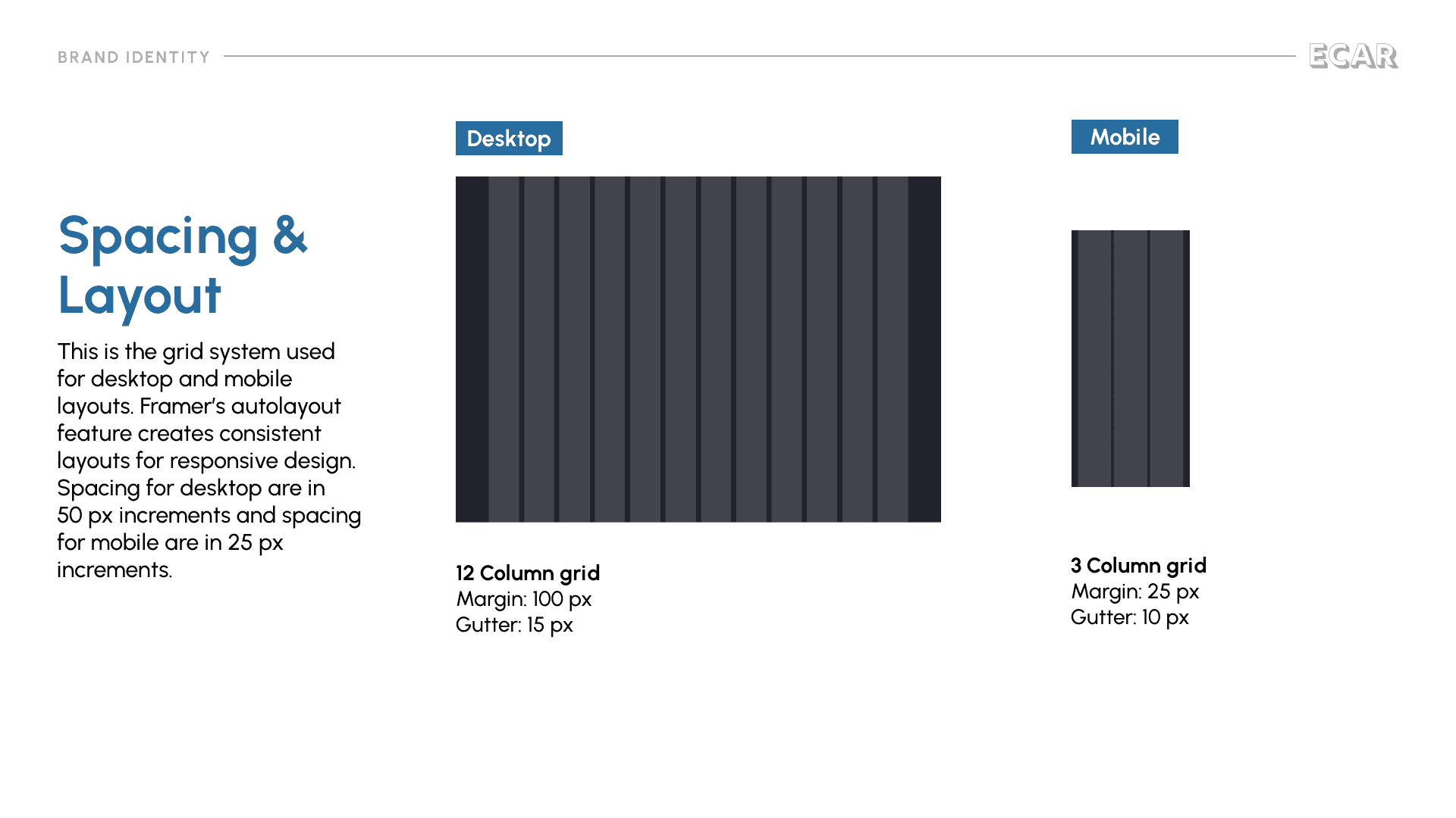 This is the design system that drives the look and feel of the website. The important parts of the design system are the brand identity and components.