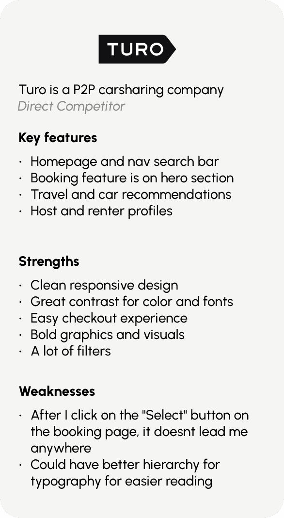 I went with an editorial-style of design because users should feel like their reading a story by the hosts about how special their car is. Most car rental websites have a very mundane and boxy style. Users should feel like they could build a connection with their host.