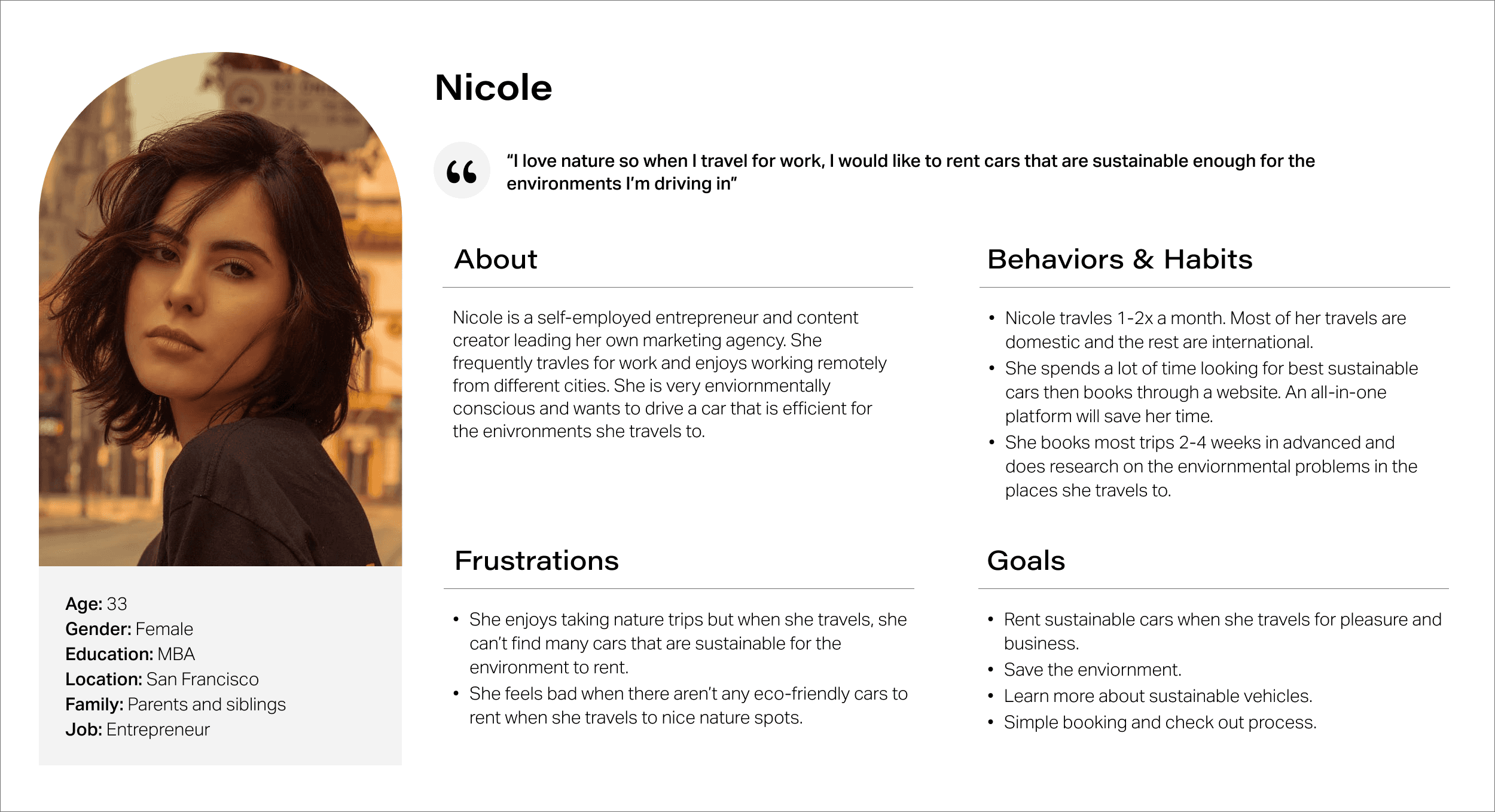 I conducted surveys from 10 potential users on their particular pain points when finding and booking sustainable cars online.