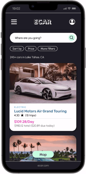Rent more sustainable cars than other car rental services. Build a simple and seamless browse, search, and check out experience.