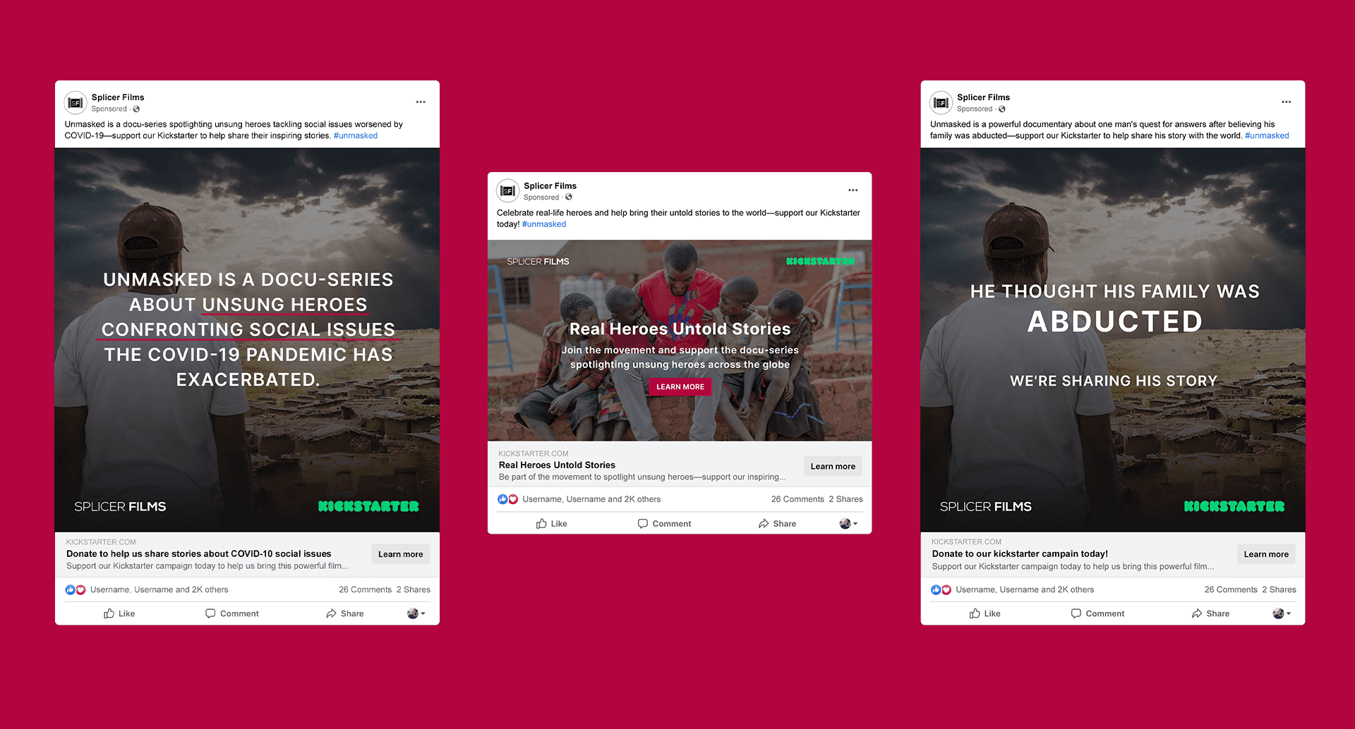 Splicer Films is a film production company behind the docuseries Unmasked, which shares powerful stories of hope and resilience during the COVID-19 pandemic. I led the development of the brand strategy for both Splicer Films and Unmasked, crafting a cohesive identity and messaging that aligned with the series' inspiring mission. In addition, I designed a suite of promotional materials, including the website, video graphics, email newsletter, film poster, pitch deck, and social media templates. Each piece was created to enhance visibility, foster engagement, and ensure a memorable, unified brand presence across all touchpoints.